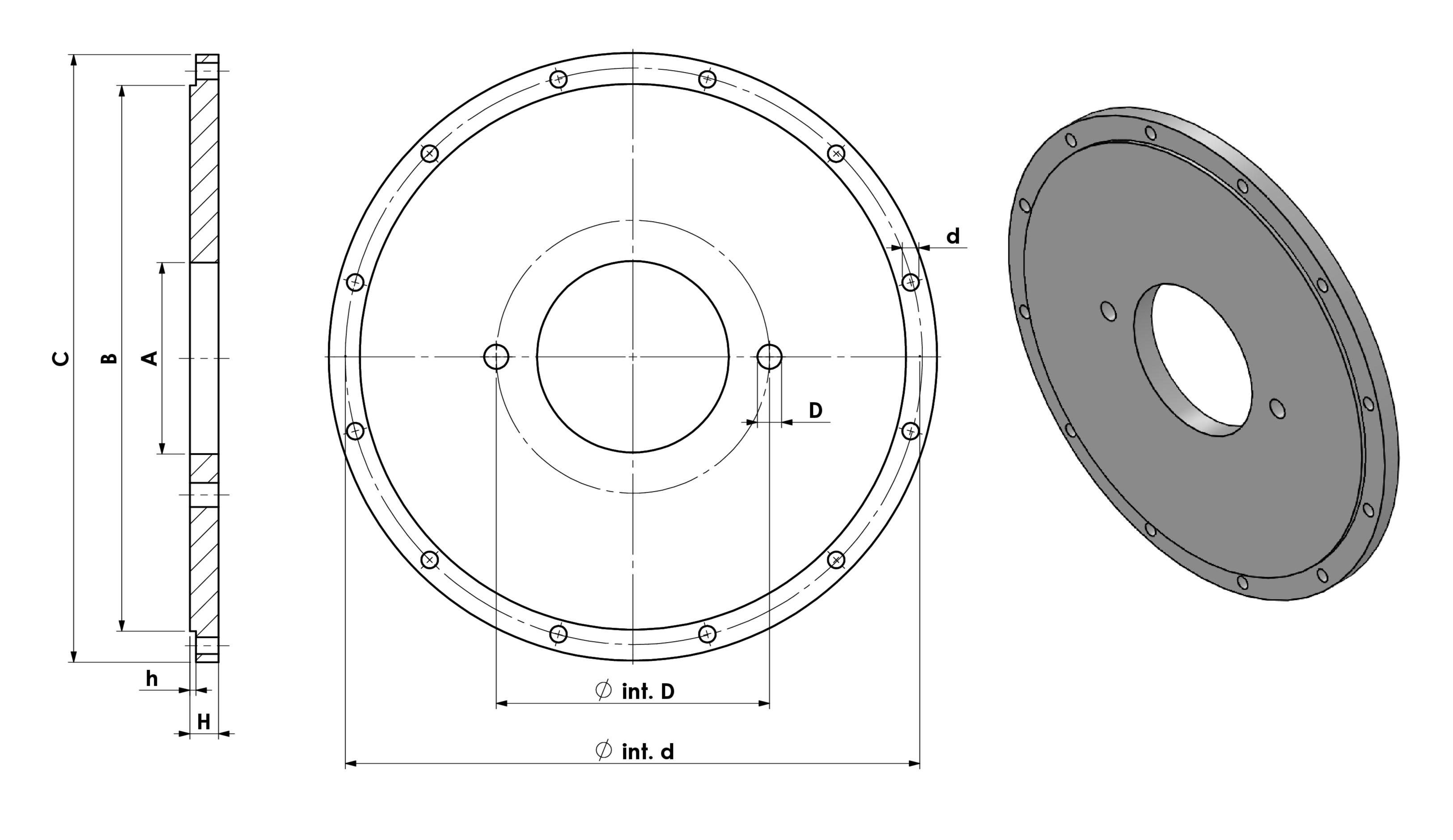 Production of pump mounting plate connect to engine flywheel. Dimension and shapes in accordance with specific applications