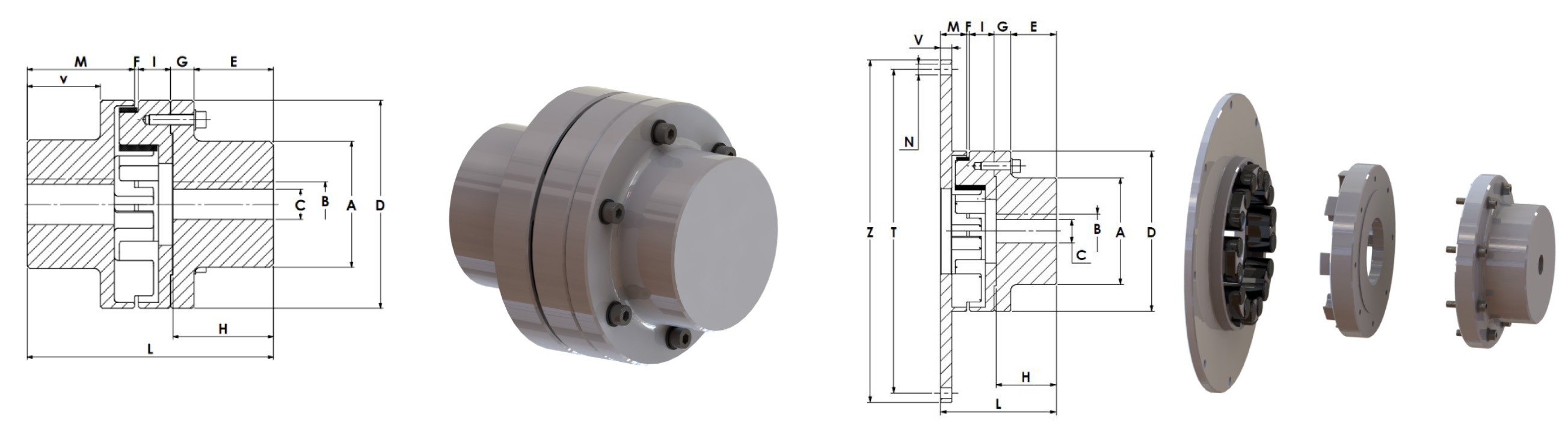 This type of coupling allows absorbing shocks and torsional vibrations, thanks to the elastic round-shaped inserts that work under compression and ensure coupling’s self-centering The standard machining of the hubs involves the milling of the teeth which offers the following advantages: