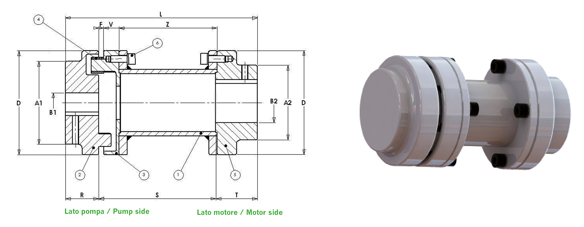 The flexible couplings with rubber pads of this series offer the advantage of a spacer that can be be replaced without moving the coupled machines .