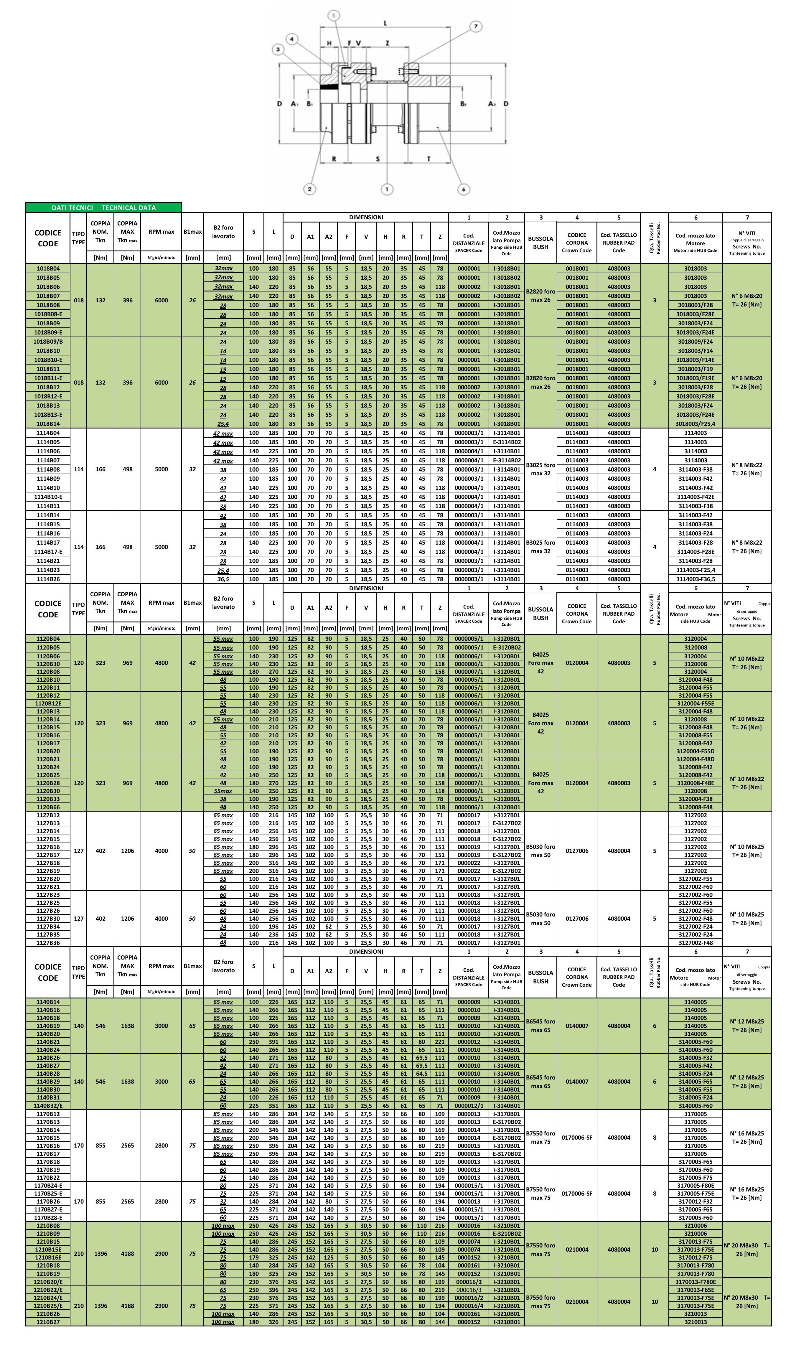 The table show only some models, many others are availble, contact our office for coupling selection.
