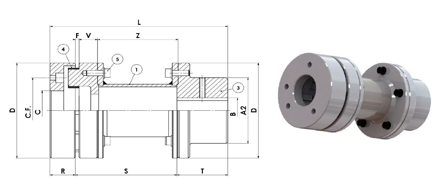Flexible couplings with spacer and flange for NO SAE Flywheel