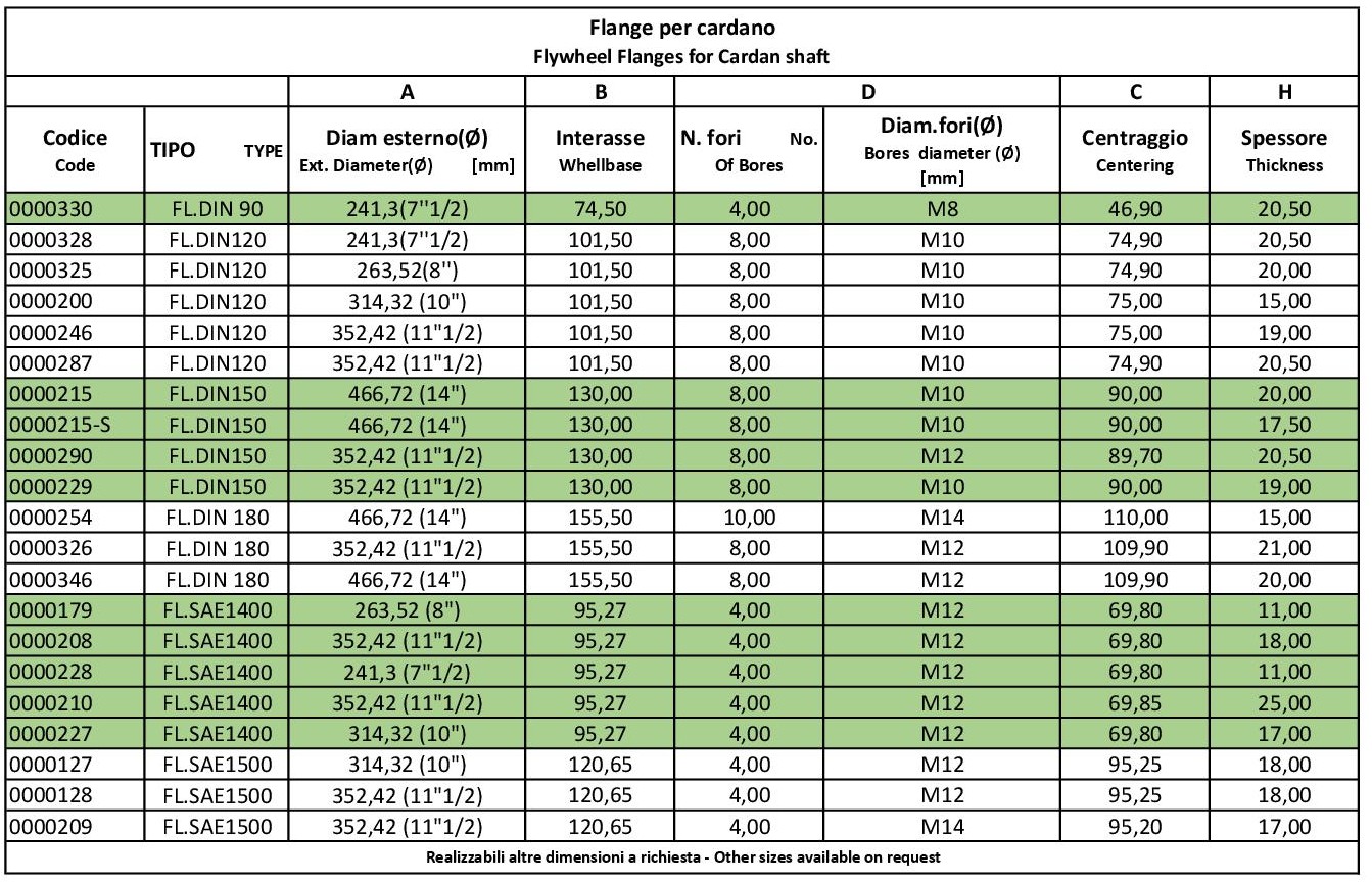 The flanges are for SAE J620 flywheel and SAE or DIN Cardan version.