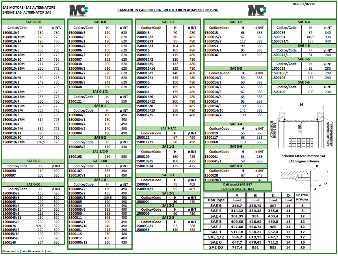 Campane SAE di accoppiamento motori e generatori