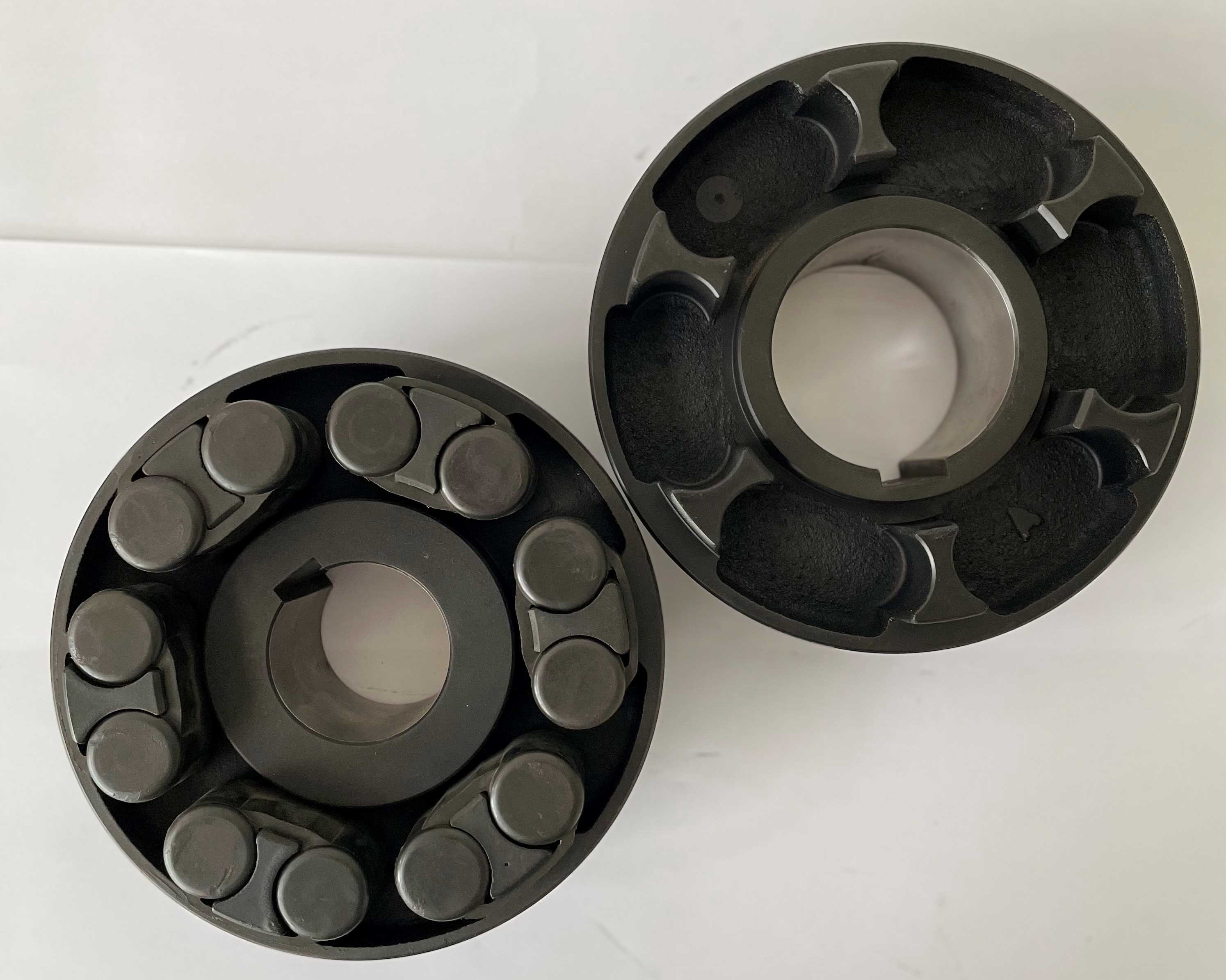 This type of coupling allows absorbing shocks and torsional vibrations, the elastic round-shaped inserts work under compression ensuring coupling’s self centering