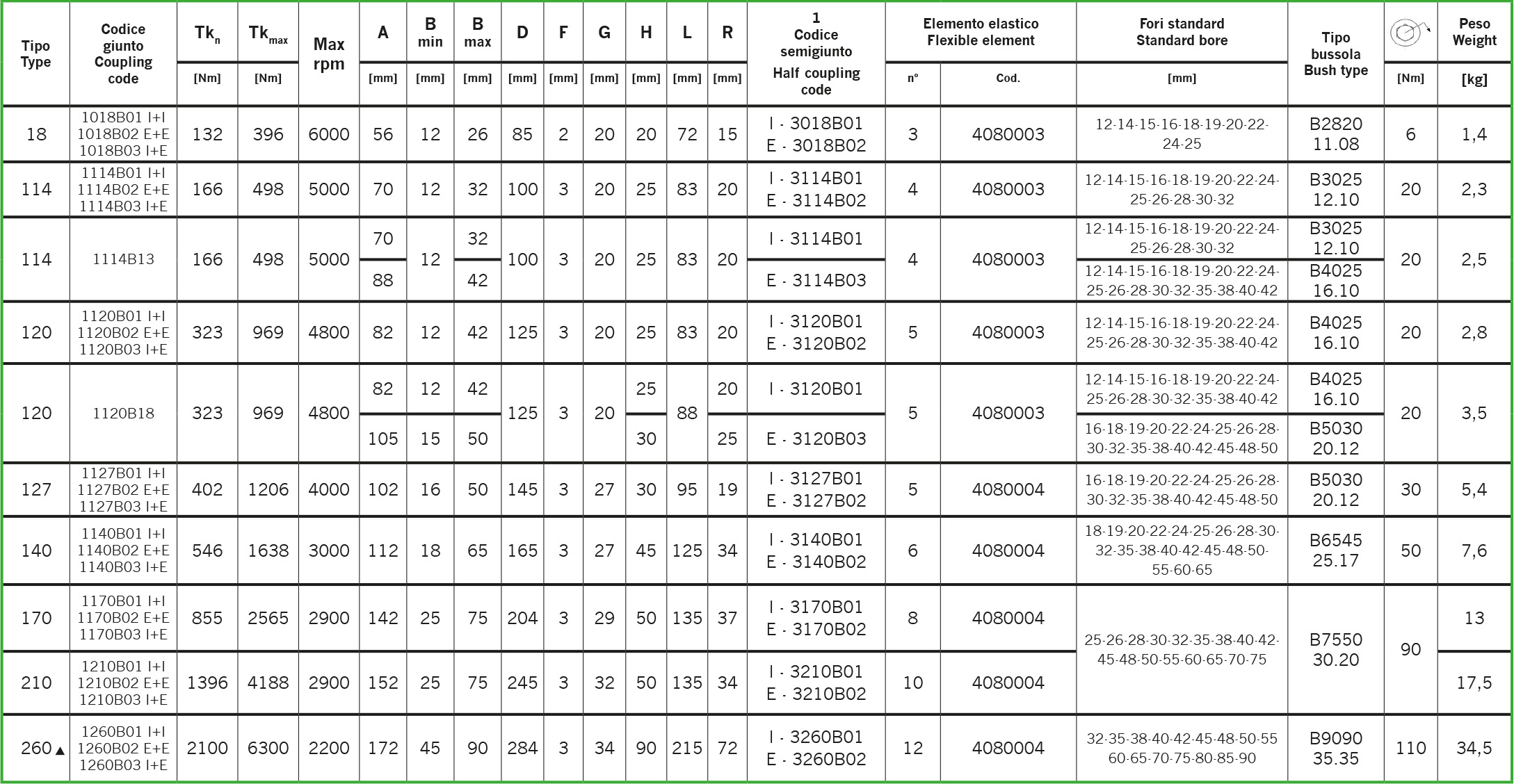 In placing an order, please specify the coupling code, the diameter of the shaft “B”, the clamp “Internal” or “External”.