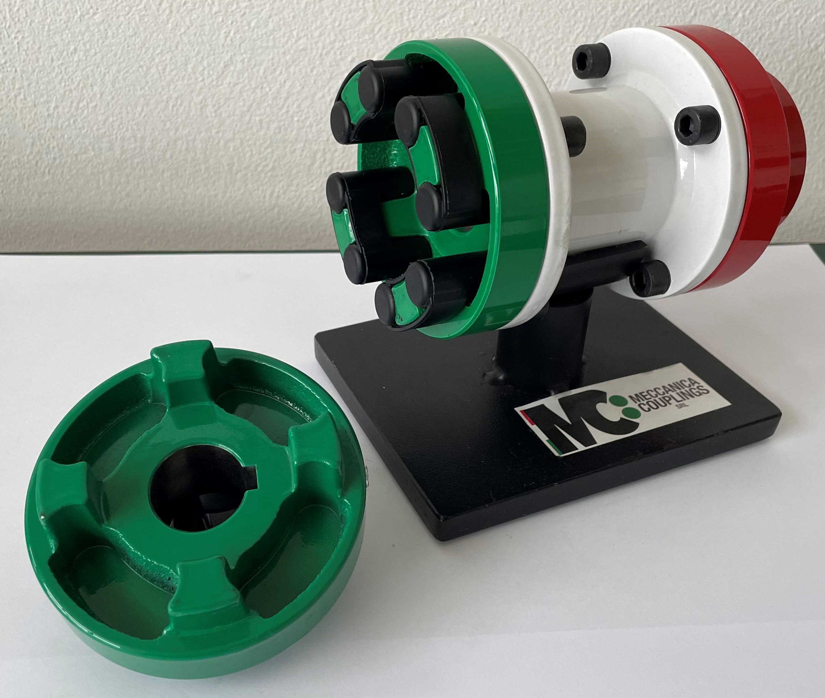 The flexible couplings with rubber pads of this series offer the advantage of a spacer that can be be replaced without moving the coupled machines .