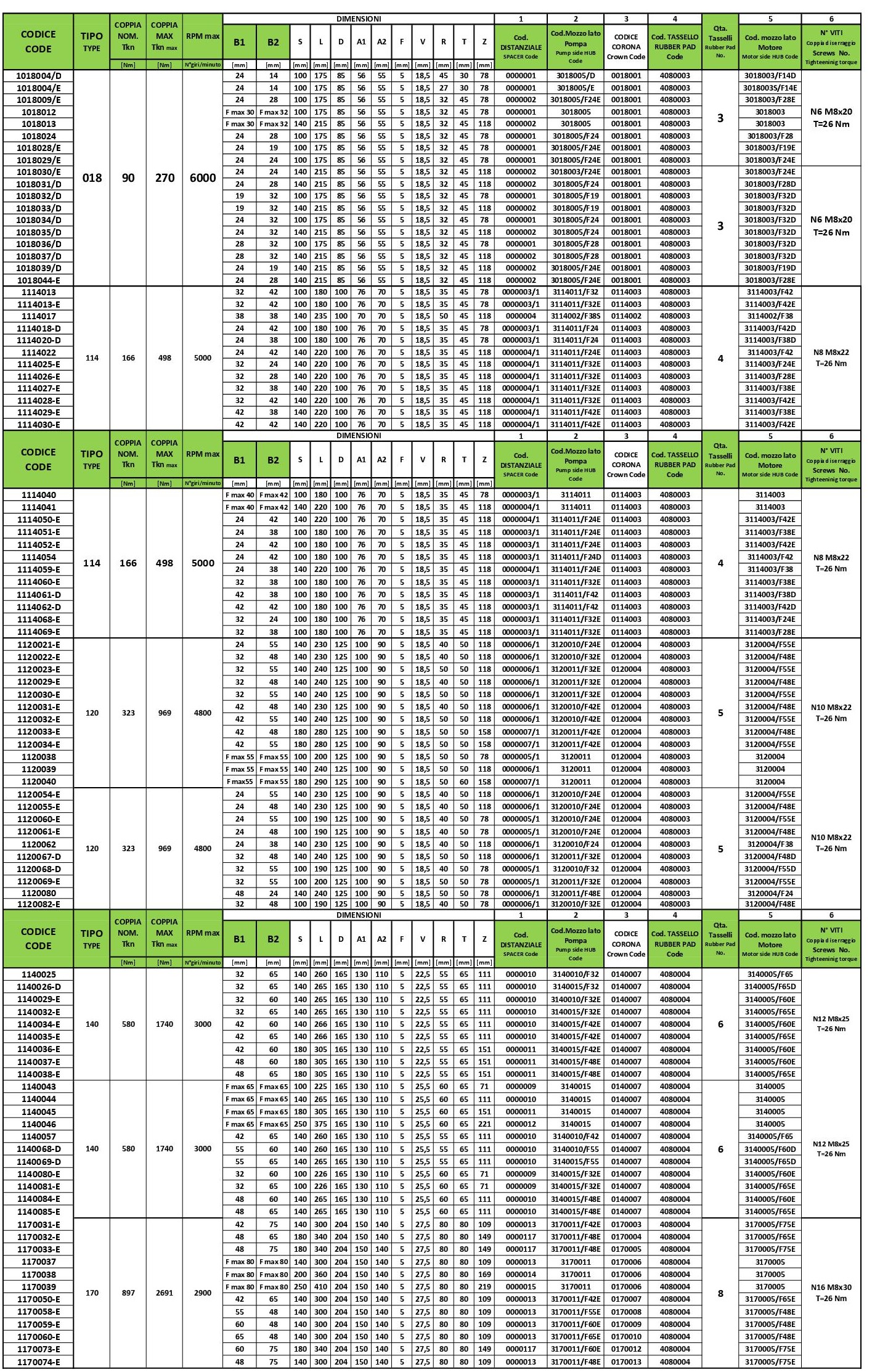 The table shows the codes for the most requested bore and keyway configurations. Conctact our Technical office for inch bores and for different bore configurations.