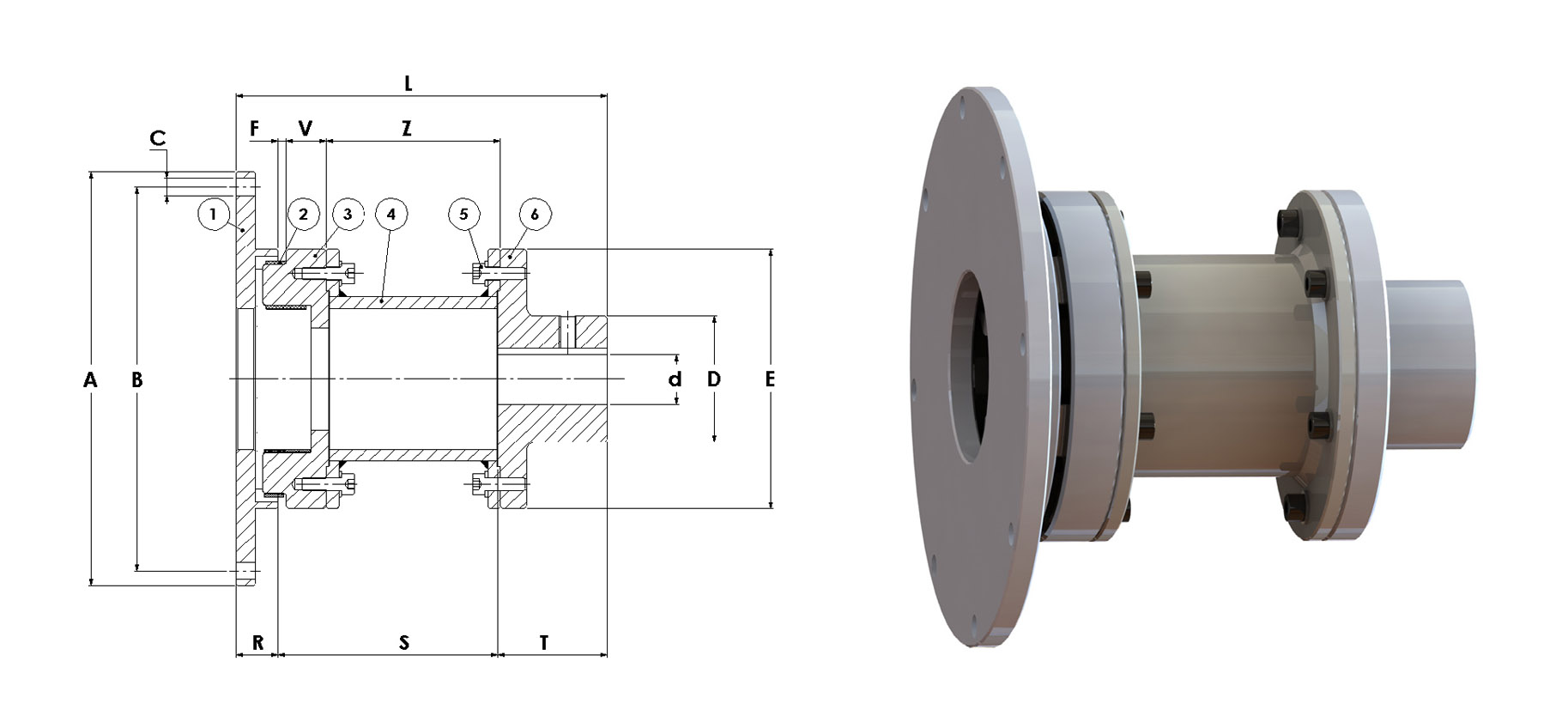 We make couplings with spacers for diesel engines with engine flywheel connecting flanges in 6 ½” 7 ½” 8” 10” 11 ½” versions.