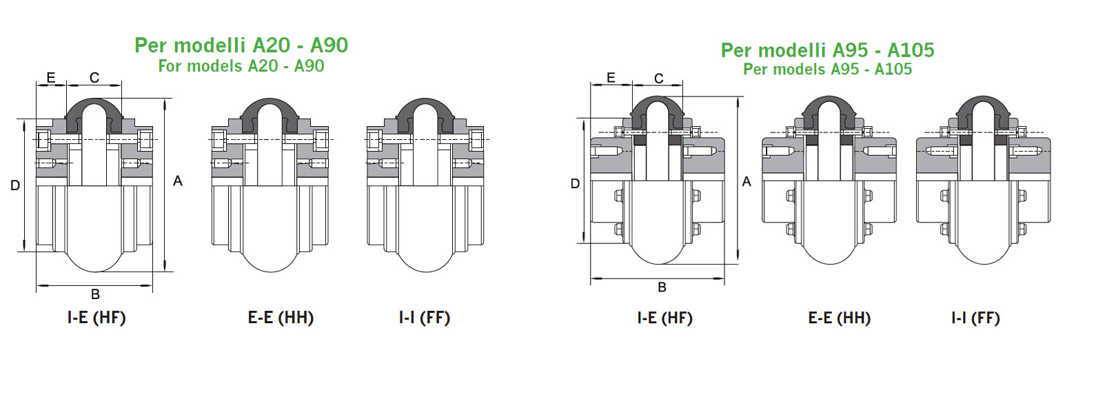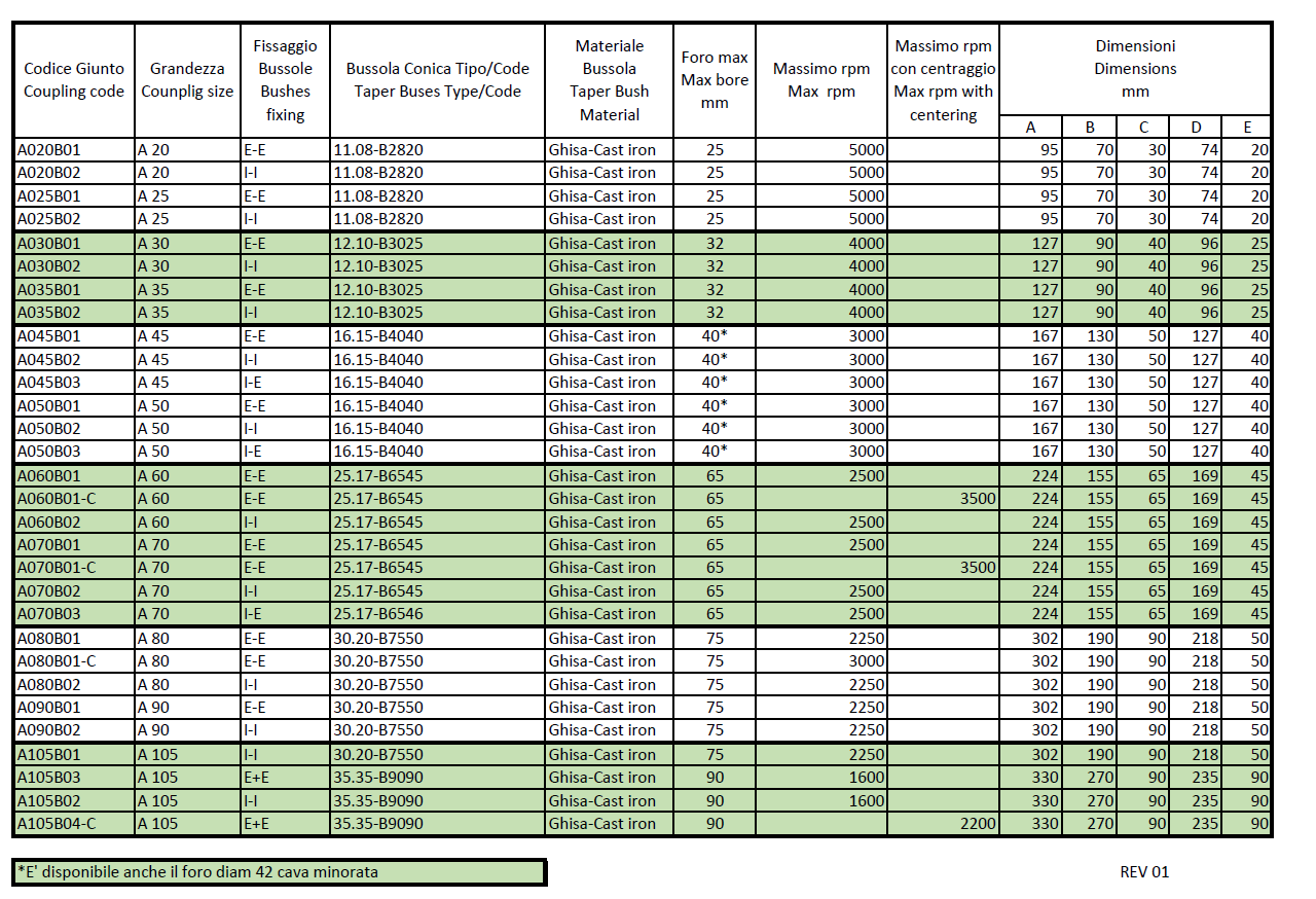 Flexible coupling serie GUB with prebored bushes The GUB serie offers the same advantage as Gu serie, adding the possibilità to allocate taper bushes The taper bushes can be allocated externally or internally It is possible assemble couplings by an hub with taper bush and an hub with normal bore and keyway for dimension not included in the table The bush is sold separately. |