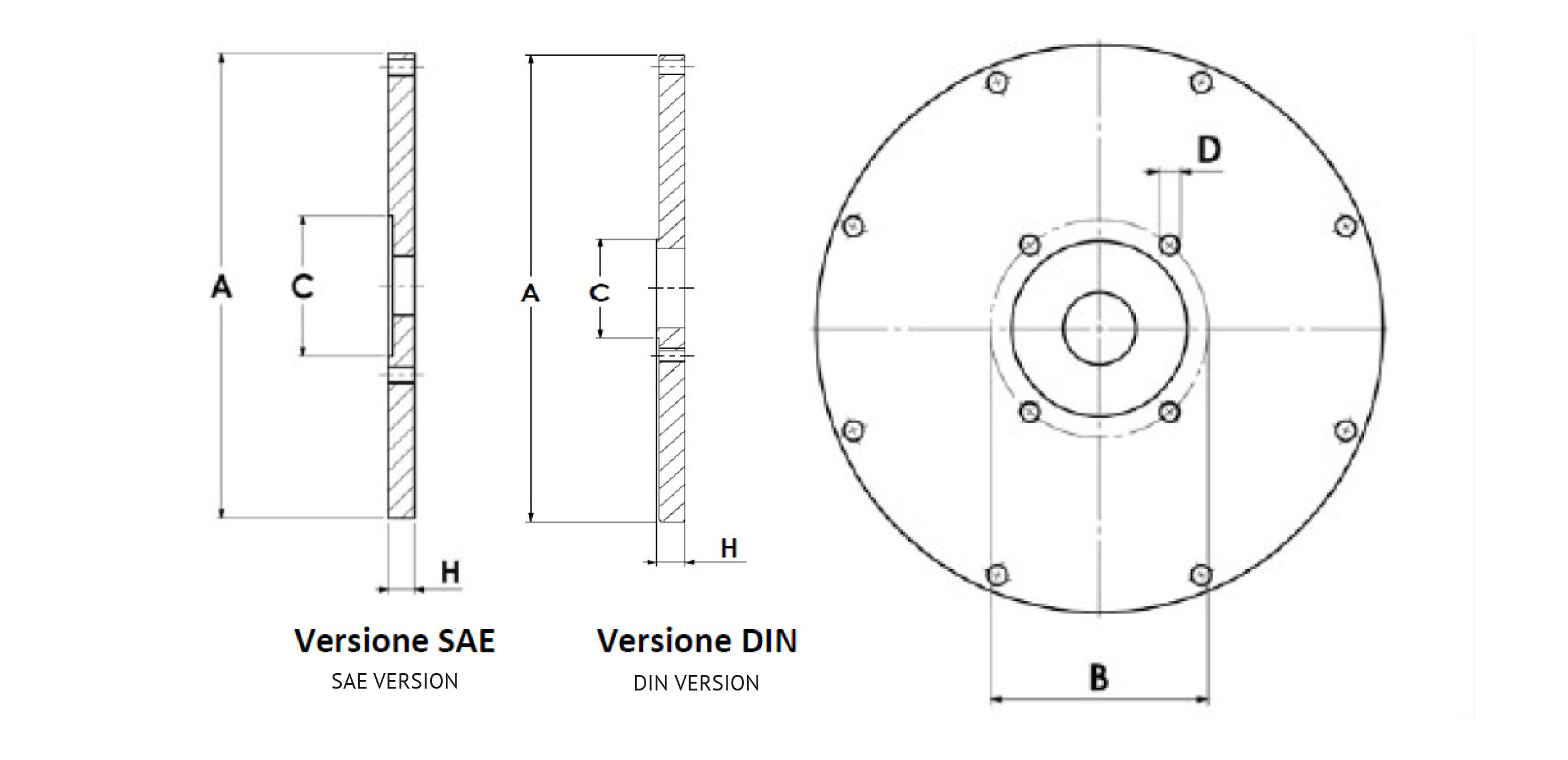 The flanges are for SAE J620 flywheel and SAE or DIN Cardan version.