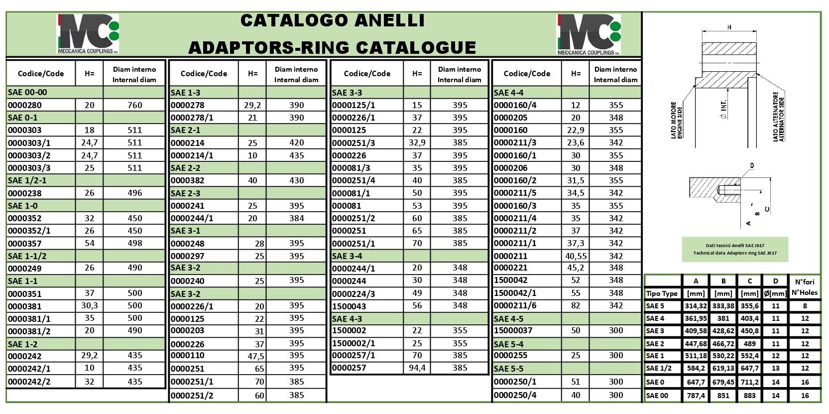 The table provides information on the most standardized versions, and it is regularly updated. We recommend contacting our technical office for any specific requirements at tecnico@meccanicacouplings.it. The features and dimensions in this catalog are subject to change without notice.